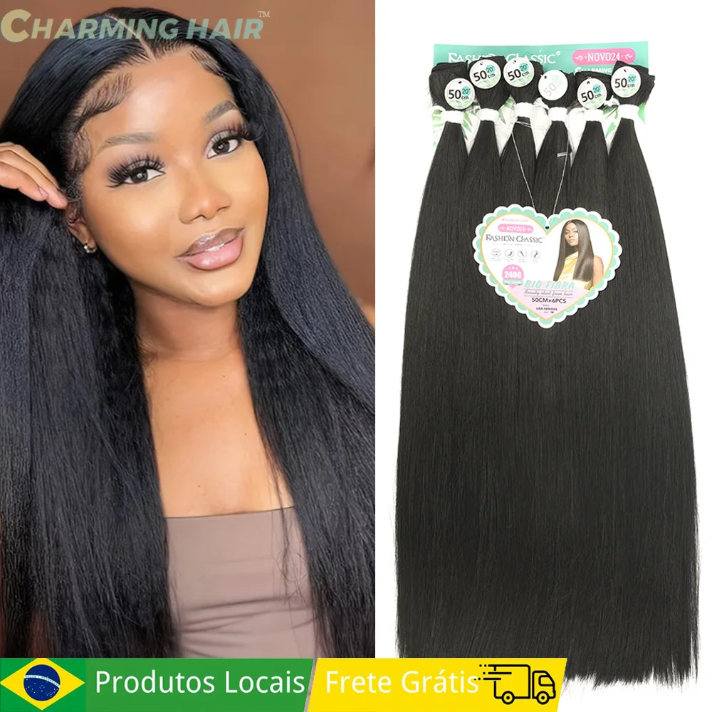 Cabelo Orgânico Liso Para Entrelace Feminina Extensões Fibra Química Orgânica Qualidade 240g 50cm 6Pas "LISA"-MODA