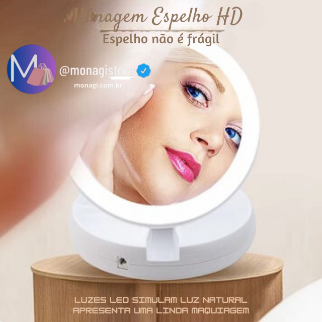 Equipado com luzes LED ajustáveis, este espelho oferece a iluminação ideal para qualquer ambiente, seja para maquiagem detalhada ou cuidados com a pele. O design dobrável e compacto garante praticidade, enquanto o aumento de 10x permite precisão em cada detalhe do rosto.