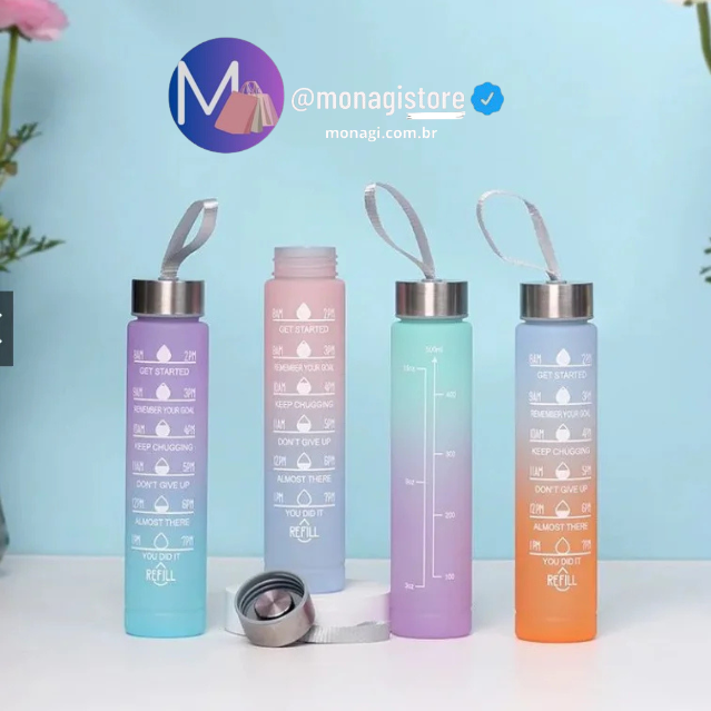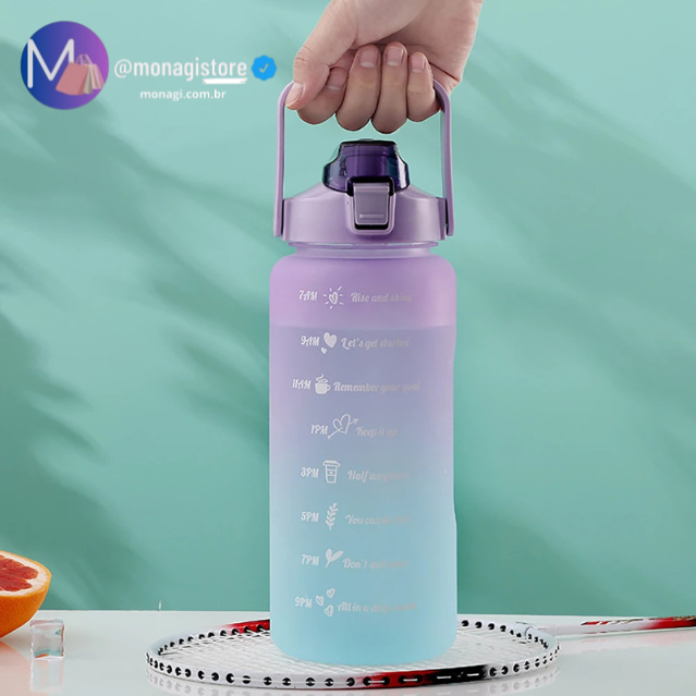 O KIT 3 GARRAFAS (2L, 900ml e 300ml) Motivadoras oferece tamanhos versáteis, frases inspiradoras e um design prático para que você nunca se esqueça de cuidar do seu corpo com diversão e funcionalidade.